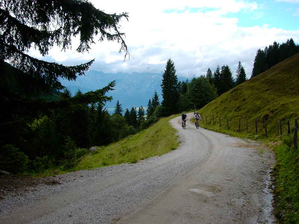 Wir folgen dem Forstweg Richtung Forsthaus Valepp, verlassen Deutschland und befinden uns unversehens in Österreich an der Erzherzog Johann Klause. Das Wetter bessert sich und entlang des schönen Flusstales gehts Richtung Kaiserhaus. Ab hier führt uns die Strasse ins Inntal. Das Schlechte, der Asphalt hat uns wieder.