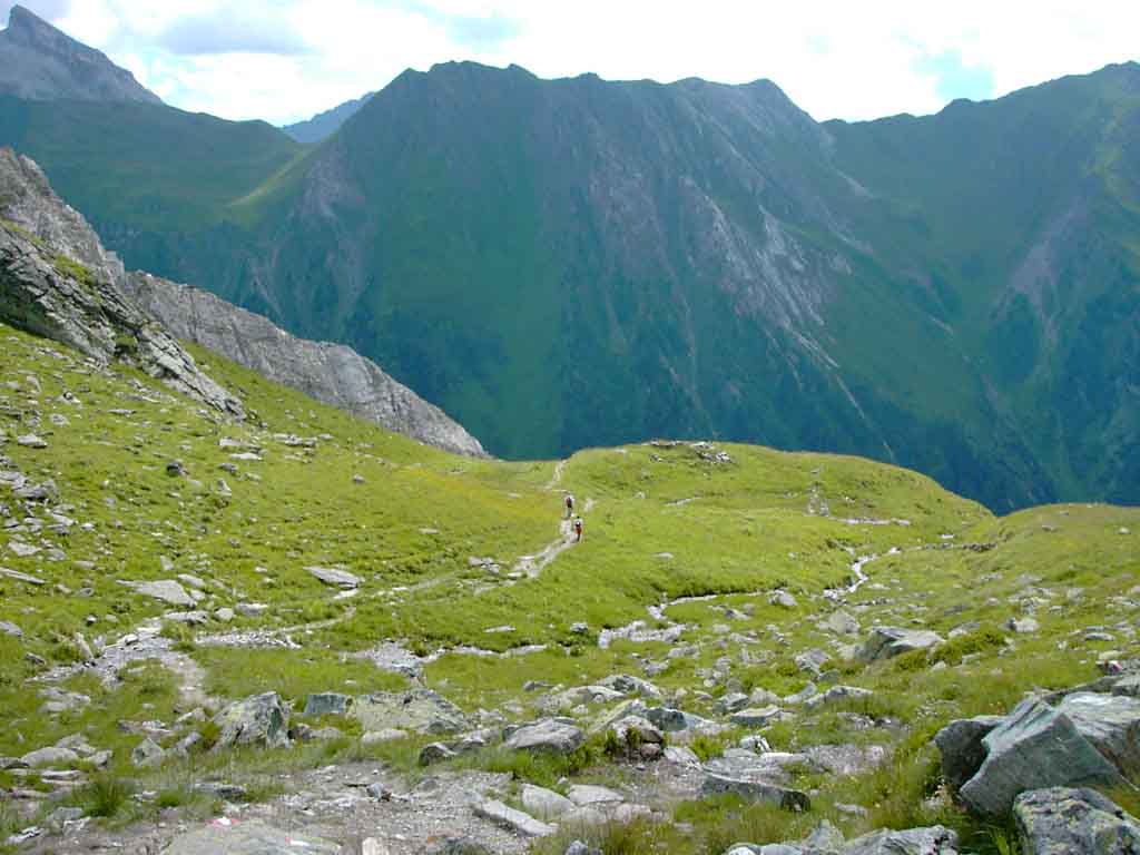 Aufbruch, der Weg zum Joch ist nicht zu verpassen, relativ breit und mit gutem