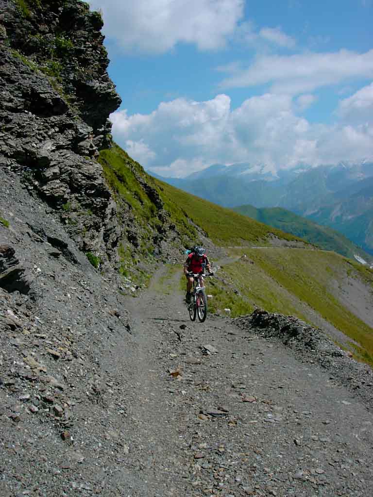 Am Ende der Auffahrt wird ein altes Militärfort erreicht, das den Einstieg zur Grenzkammstrasse markiert. Von hier aus schlängelt sich die ehemalige "Wehrstrasse" oberhalb des Wipptals bis Gossensaß. Die Aussicht auf die umliegenden Berge ist unbezahlbar und lenkt davon ab, das sich bis zum Ende des Weges doch einige Höhenmeter ansammeln.
