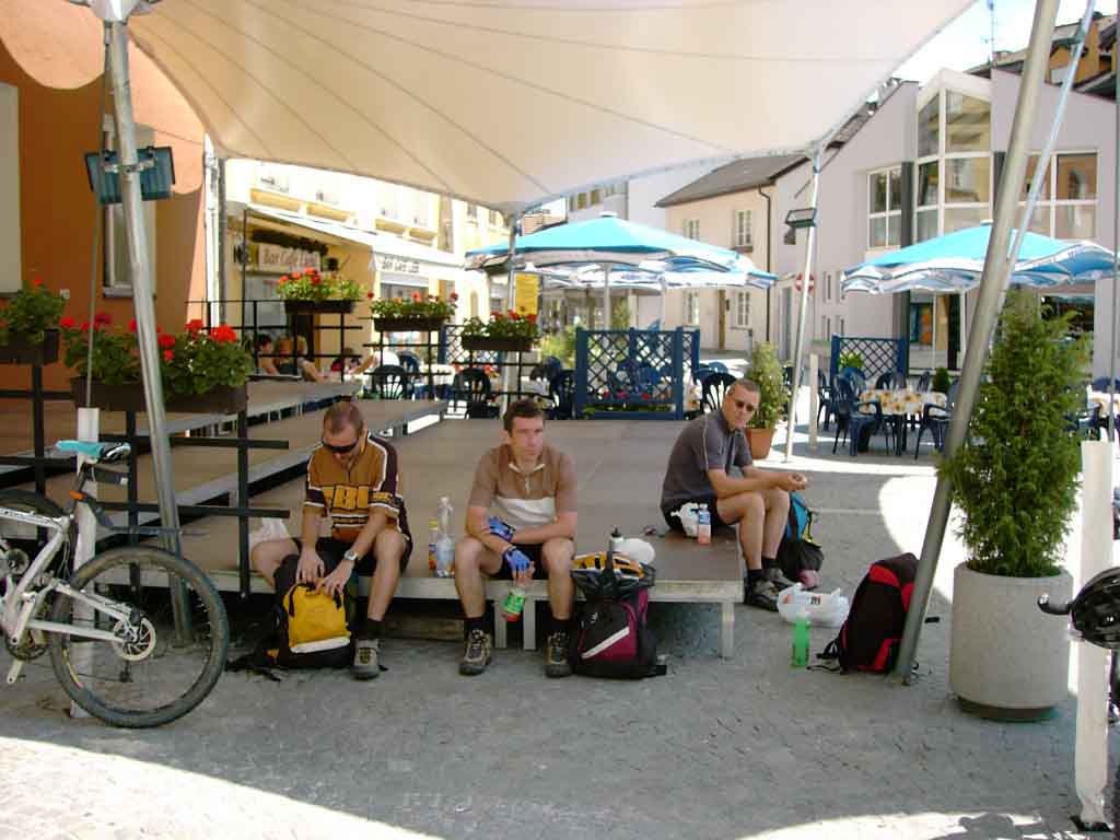Leider hat auch dieser Spaß ein Ende und vor dem Sandjöchl wählen wir die Schotterabfahrt Richtung Gossensaß. Heute würde ich die Trailabfahrt über den Wanderweg 1 laut Kompasskarte wählen. Man ist ja lernfähig ;-). Wieder im Wipptal angekommen, wird über kleine Nebenwege, die durchaus große Steigungen aufweisen können, Sterzing angesteuert. Geplant war hier eine Pause. Nicht geplant war die Länge der Pause. Ein Rucksackriemen des Bremsenschleifers hatte sich verabschiedet und so durften wir die Mittagspause des Sattlers abwarten. Und wer Italien kennt, weiß, das die Pause lang sein kann!