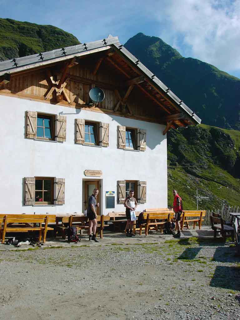Da ich mich doch vorher etwas informiert hatte und der Aufstieg zur Schneebergscharte als üble Schlepperei beschrieben wurde, meldete ich erst leise Bedenken an, ob das so eine gute Idee wäre, anbetracht der reichlich späten Stunde und den noch reichlich vorhandenen Höhenmetern den Aufstieg zu wagen. Ich wurde leider für etwas kleingeistig gehalten. Daraufhin wurde ich ausnahmsweise etwas lauter und machte deutlich, das ich keinen Bock hätte in knapp 2800 Höhe, im Dunkeln, auf unbekannten, hochalpinen Gelände ohne vernünftiges Licht mein Rad durch die Gegend zu schieben. Abgesehen davon, man musste ja auch noch ein paar Höhenmeter beim Abstieg zum Schneeberghaus vernichten. Dies waren anscheinend Wirkungstreffer, denn auch mein alter Kumpel kuckte mich etwas verwirrt an. Die Frage, was ich den als Alternative hätte, ließ mich erst etwas stutzen, aber da die Auseinandersetzung taktisch klug fast neben der Moarerbergalm geführt wurde, meinte ich bloß: Keine Panik, ich mach jetzt da drüben die Übernachtung klar. Natürlich hatte ich keine Ahnung, ob man da überhaupt nächtigen konnte. ;-)