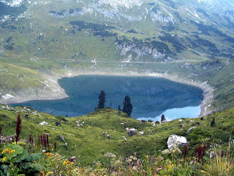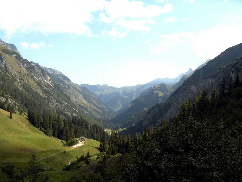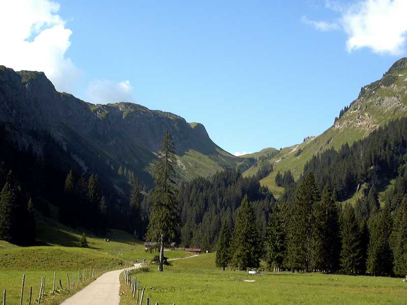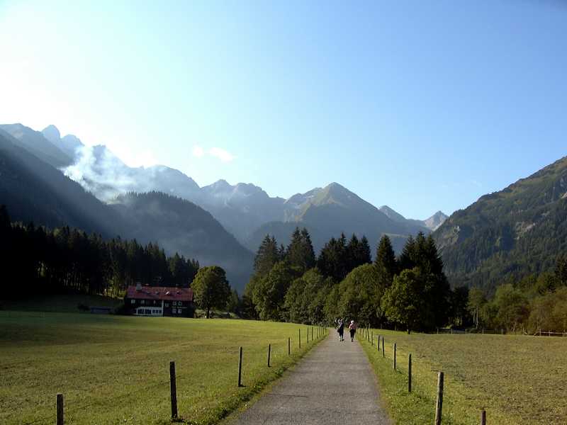 So, es wird ernst, keine Ausreden mehr. Oberstdorf wird mit der Absicht Richtung Rappenalptal zu gelangen, verlassen. Trotz GPS, oder gerade deswegen, wird erst eine Ehrenrunde gefahren! Aber nach dem ich mich altmodisch orientiert hatte, Sonne, Mond und Sterne, radel ich an der Stillach Richtung Süden genn Rappenalptal. Den Versuch, den Freibergsee zu umrunden, gebe ich schnell auf, so früh am Morgen braucht Mann keine 20 prozentige Steigung. Zügig geht es ins Rappenalptal.
