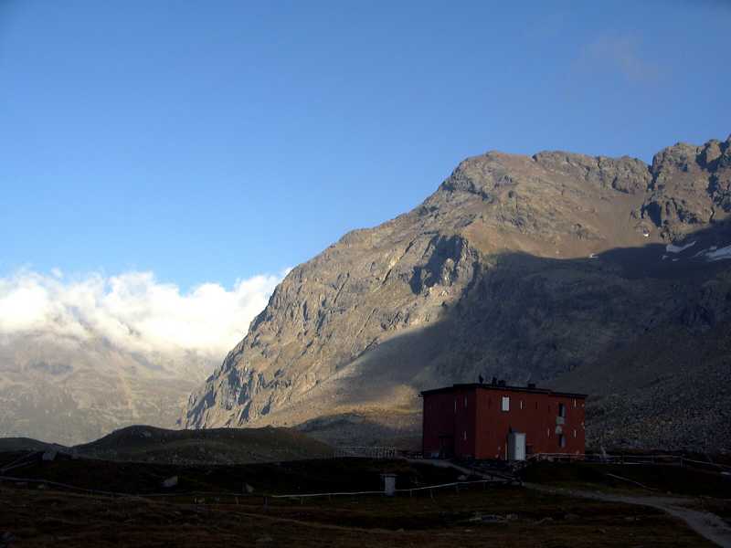 Das Rifugio sieht nicht nur aus wie eine Kaserne, es ist sogar eine. ;-). Der Hüter des Hauses scheint mein Italienisch nicht so ganz zu verstehen und labert etwas von vorher anrufen für Bett und so. Meine Antwort, das heute Dienstag wäre, seine Hütte angeblich 50 Betten hätte und es keine Saison wäre, stimmte ihn etwas gnädig. Zwei Schweizer treffen ein, er fängt wieder mit anrufen etc. an. Scheint also sein Standartspruch zu sein. Da aber der gemeine Schweizer multilingual aufwächst, folgt die Antwort in perfektem Italienisch und entsprach ungefähr meinen Ausführungen. Das hat ihn dann ruhig gestellt. Es treffen noch zwei österreichische Radfahrer und ein Grüppchen gemischteuropäischer Wanderer ein. Zum guten Schluss trudeln zwei schweizer Mädel ein, die mit ihrem Profi GPS von Trimble die Veränderungen für die Schweizer Wanderkarten aufnehmen. Geiler Job und ich musste ihnen deshalb auch ein Gespräch aufzwingen, natürlich aus rein wissenschaftlichen Gründen. ;-).
