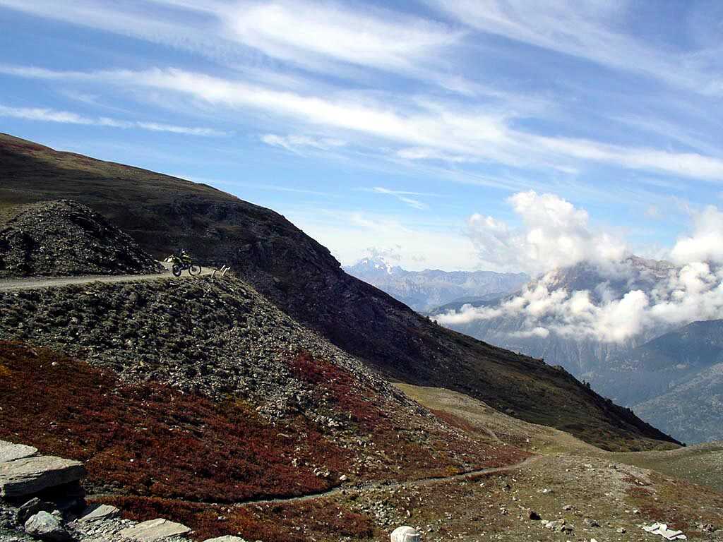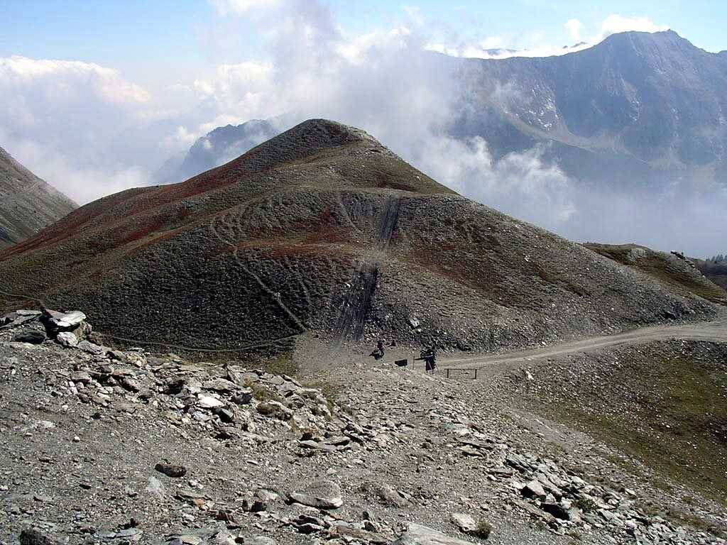 Ab dem Paß ist ein Teilstück wieder asphaltiert, der interessantere nördliche Abschnitt Richtung Gran Serin, der kurz hinter dem Colle rechts abzweigt, ist für leider für Motorfahrzeuge gesperrt worden. Wir nehmen deshalb den nächsten unasphaltierten Abzweig und folgen der Piste bis zum Colle de Assietta.