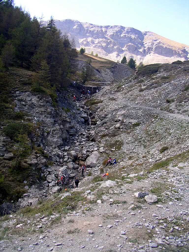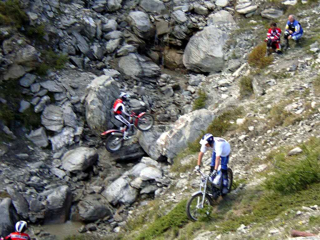 Kurz vor Sestrieres tummelten sich bunte Menschen auf motorbetriebenen Maschinen in Bachbetten rum. Was sich erst als lokale Veranstaltung darstellte, war allerdings die Aufwärmstrecke für die stattfindende Trial Weltmeisterschaft, leckere Strecken. Die Verbindungsetappe fand ich schon aufregend genug.