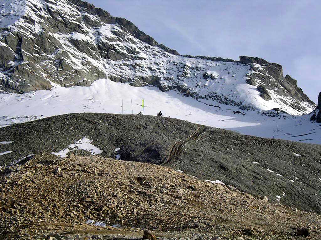 Vor Jahren standen hier oben noch Reste eines Sommerskigebietes mit alten Gebäuden. Davon ist nichts mehr vorhanden und außer den Blick auf die umliegende Bergwelt hat der Endpunkt leider keinen weiteren Höhepunkt zu bieten, es gibt bessere Aussichtsplätze, allerdings kaum Höhere die man anfahren kann, das GPS zeigt etwas über 3000 m an.