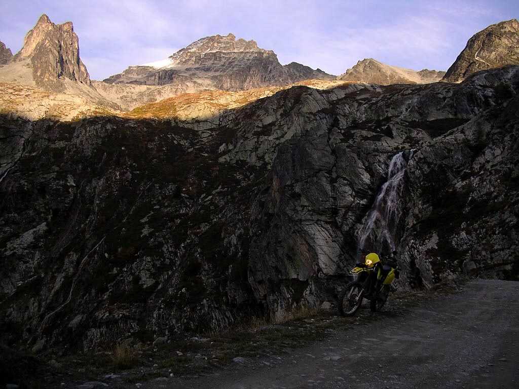 | Nach zwei Zigarettenlängen geht der Spaß weiter und vorbei am allseits beliebten Wasserfall, werden die Serpentinen zur Rochomolles Ebene vernichtet. |