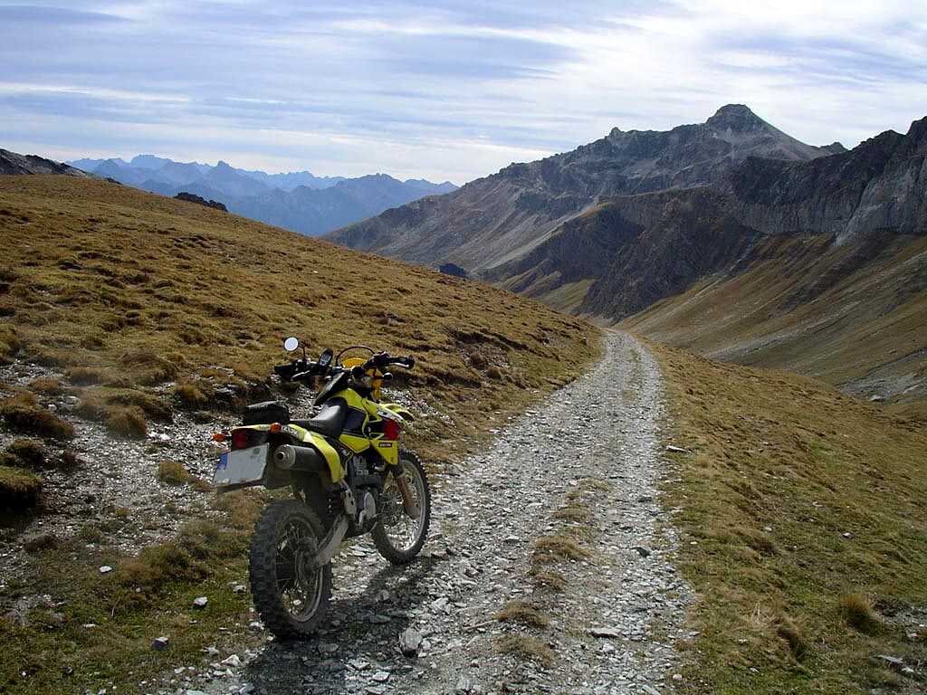 Alles kein Problem, auf dem vorderen Schutzblech befindet sich seit Jahren ein Ersatz Schlauch incl. Luft. Nur gerade heute liegt das Teil auf dem Beifahrersitz meines Autos, sehr toll. Die Tour wird gecancelt, aber glücklicherweise hatte ich Susie einen Reifenhalter geschenkt, der den Reifen auch im lust- und luftlosen Zustand bei Laune hält. So krebse ich wieder ins Tal, schnorre mir noch etwas Luft im nächsten Ort, mit Moppedschläuchen kann der Tankowarto leider nicht dienen. Kurzfristig stellt sich der normale Vortrieb ein, der aber kurz vor der bekannten Elva Schlucht wieder nachlässt.