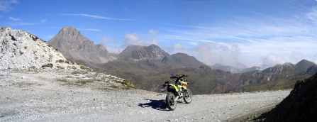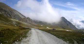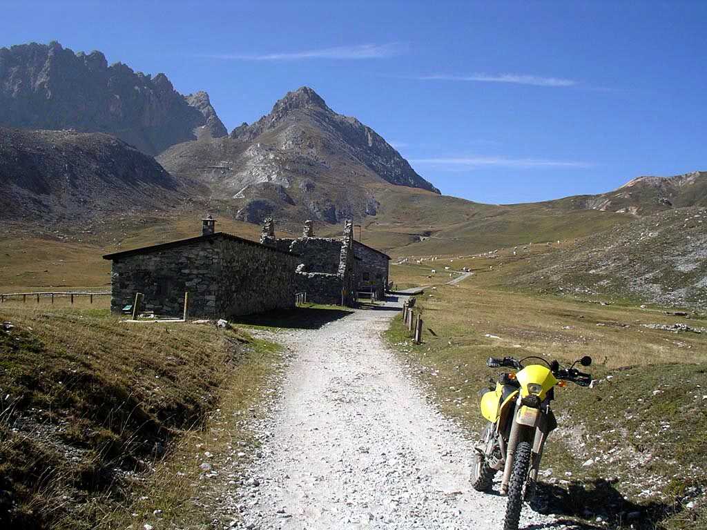 | Auch das Rifugio Gardetta hat schon seine Pforten geschlossen, schade. Dafür ist im Prinzip die Durchfahrt bis zum Col di Gardetta frei; da allerdings auf der Weide reichlich Kuhvieh rumläuft, verzichte ich auf die Befahrung und setzte die Runde fort. |