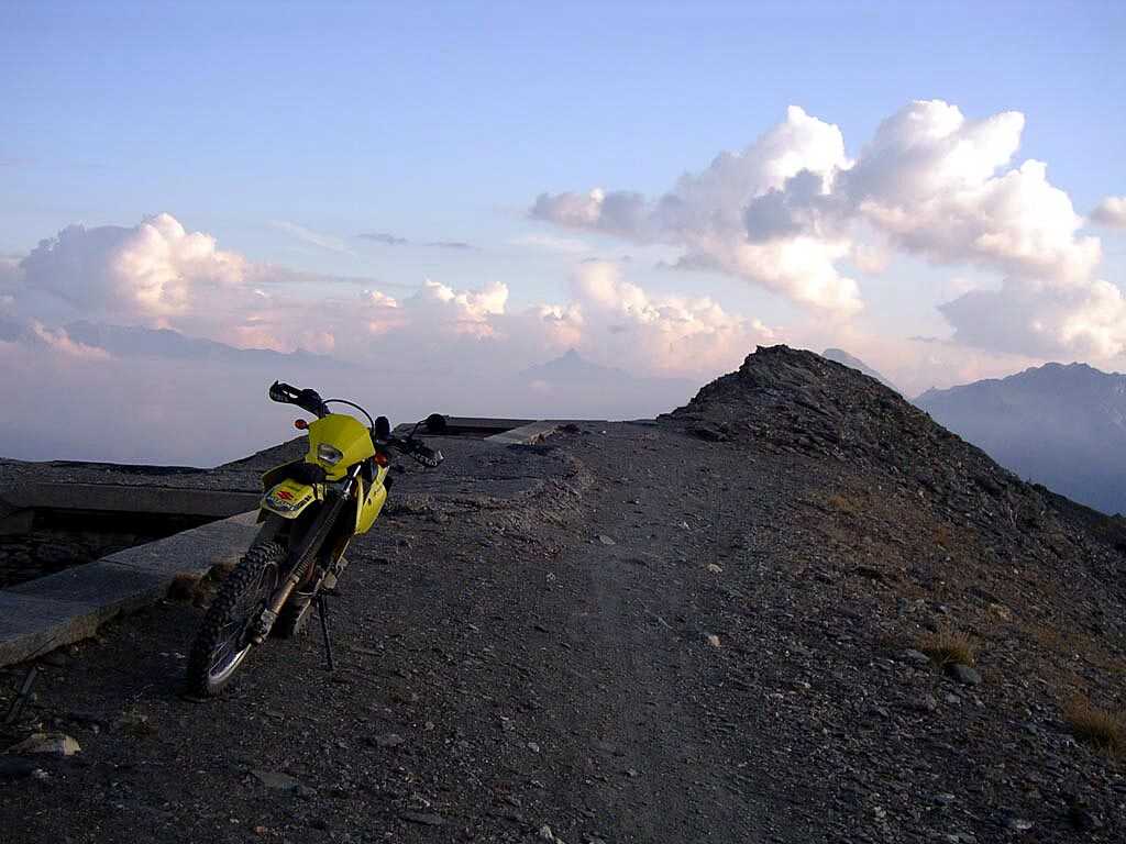 Die BeEmWeh wurde am Einstieg in Fenils zurückgelassen, in der Hoffnung, sie nach erfolgreichem Gipfelsturm wieder unversehrt vorzufinden. Die Strecke zum Jafferau ist im Normalfall auch für eine BeEmWeh locker zu schaffen, nur da wir vor Einbruch der Dunkelheit am Fort eintreffen wollten, wurde die KTM und deren Besatzung auf Soziatauglichkeit und zulässiges Gesamtgewicht getestet.