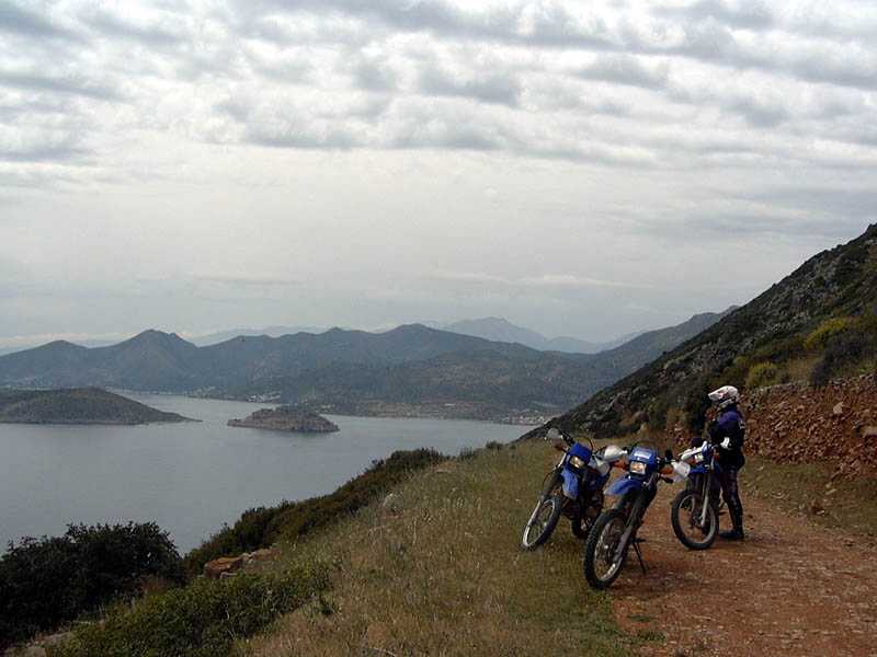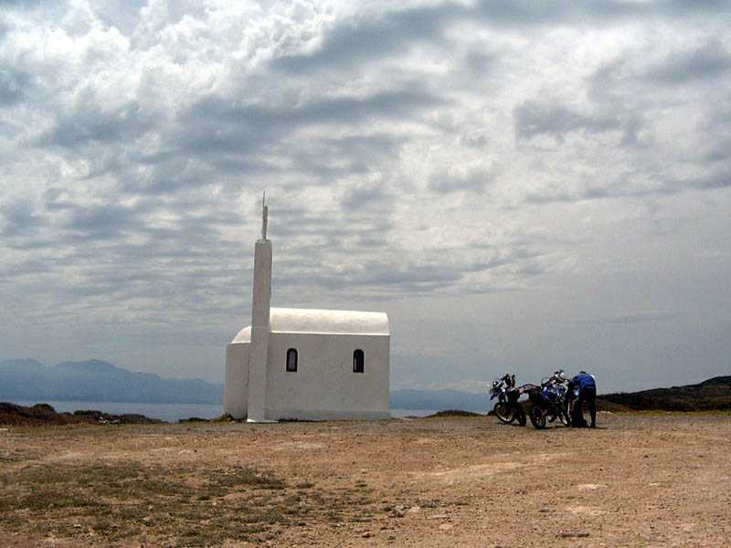 Der Flieger hob erst um 18:00 Uhr, wir hatten also Zeit für einen letzten Ausflug. Noch war das Wetter gut und wir nahmen das nordöstliche Gebiet, teilweise vom Regentag bekannt, unter die Räder. Über kleine Sträßchen fuhren wir Richtung Elounda. Auf die nördlichste Spitze führt ein Schotterweg, der einen schönen Blick auf die Stadt, die vorgelagerten Inseln und den Psiolitis bietet.