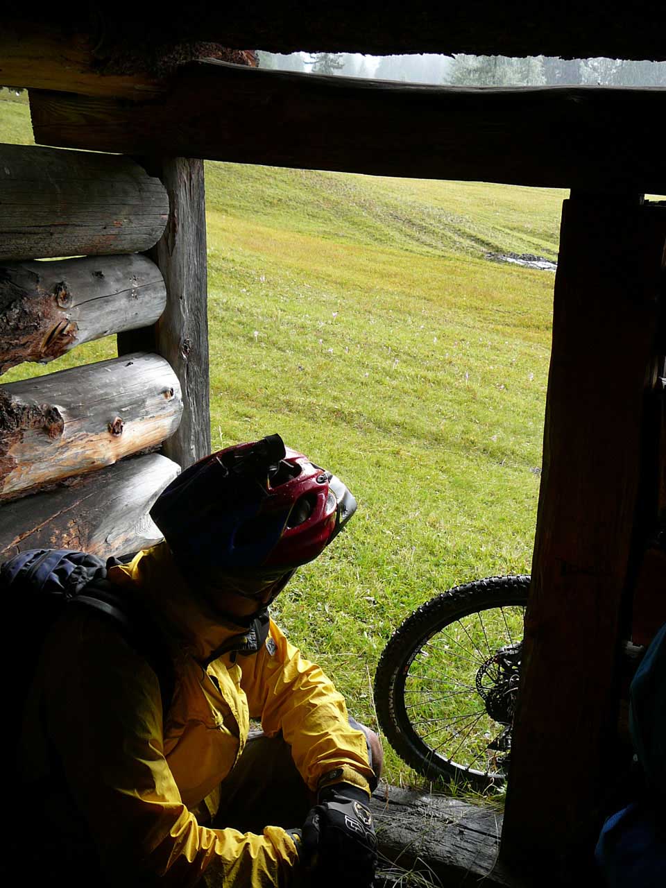 in einer regenumfluteten Almhütte, sehr malerisch. Durch die vermehrte