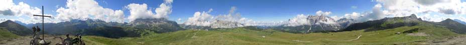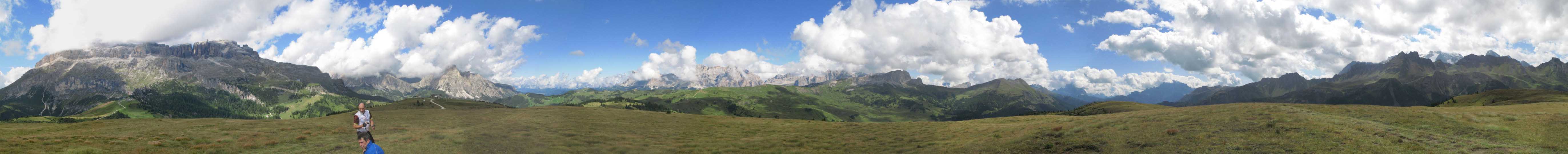 dem Kammweg an, freie Sicht, rechts der Kreuzkofel, links Sella