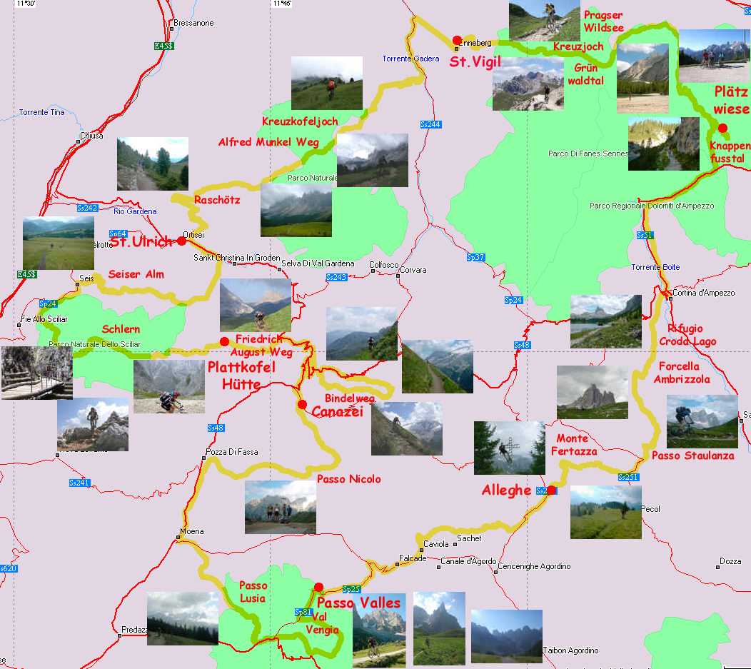 Übersichtskarte Ronda Dolomiti Für große Bilder auf die Thumbnails, für die Etappen auf den Track klicken.
