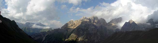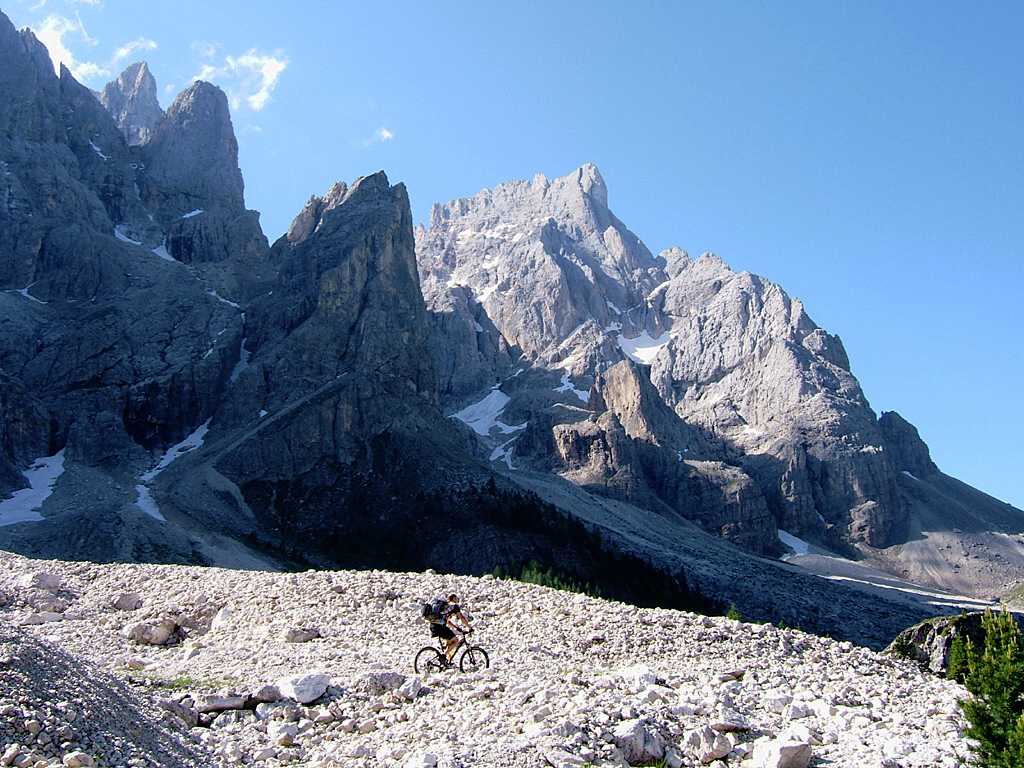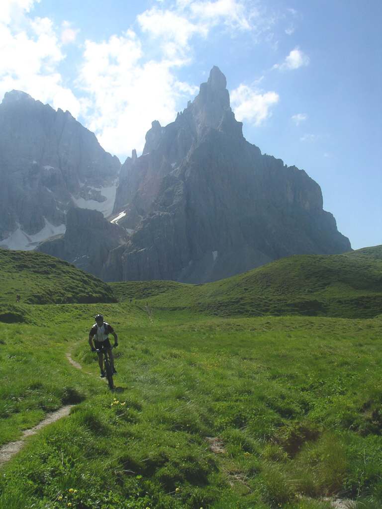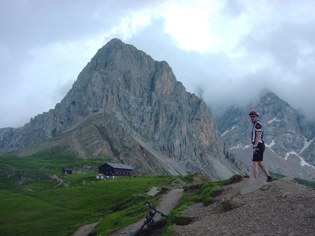 heftige Steigung. Auf dem Sattel weht ein frischer Wind und über der Pala