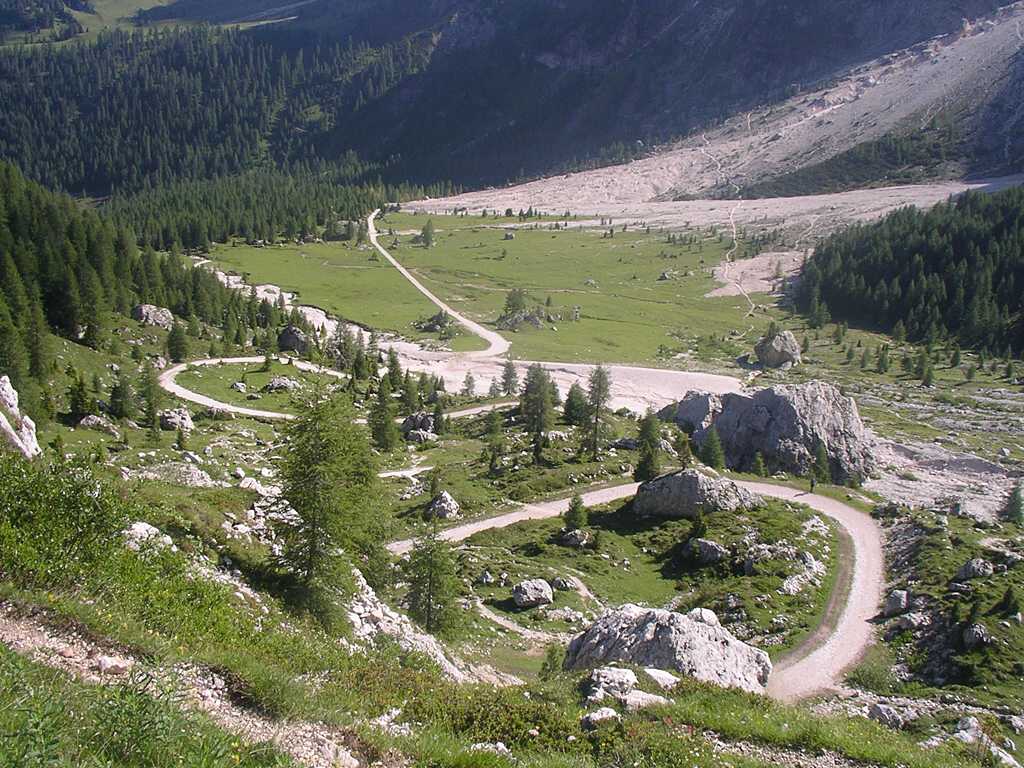 den Blick auf den restlichen Weg und den Passo San Nicolo frei gibt.