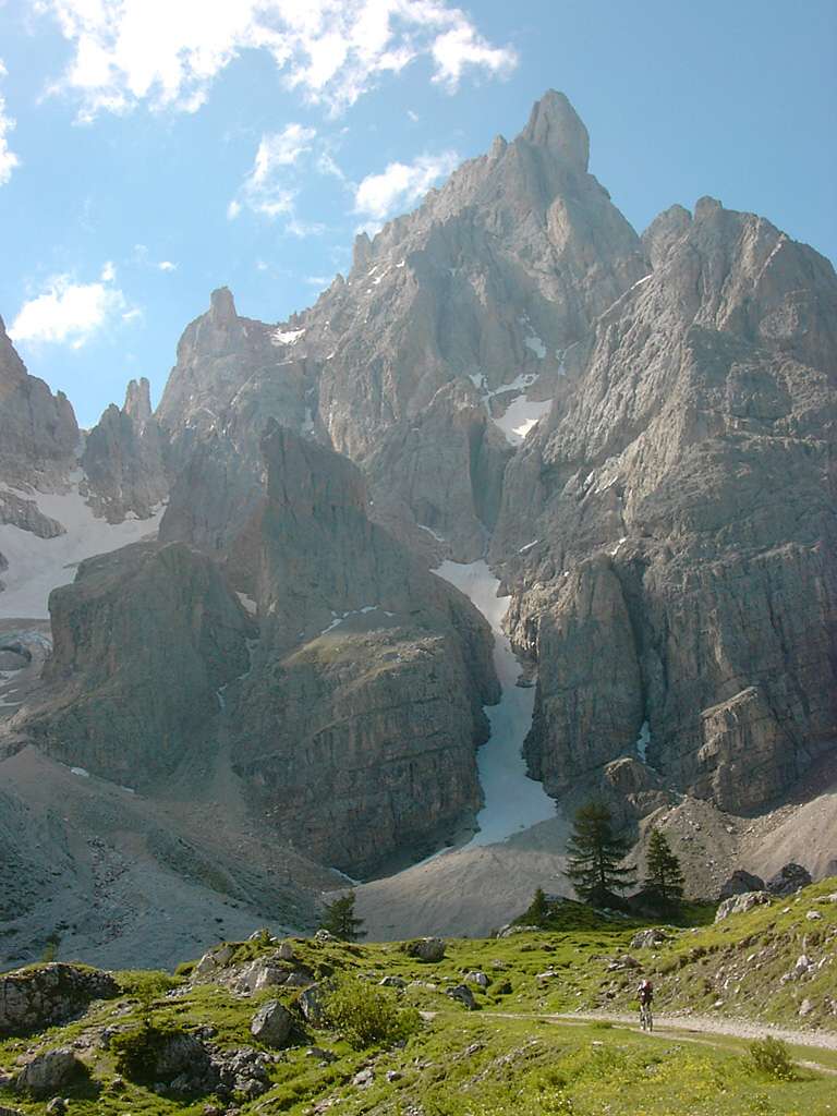 Oben angekommen genießt man noch mal die Aussicht auf die Pala und findet