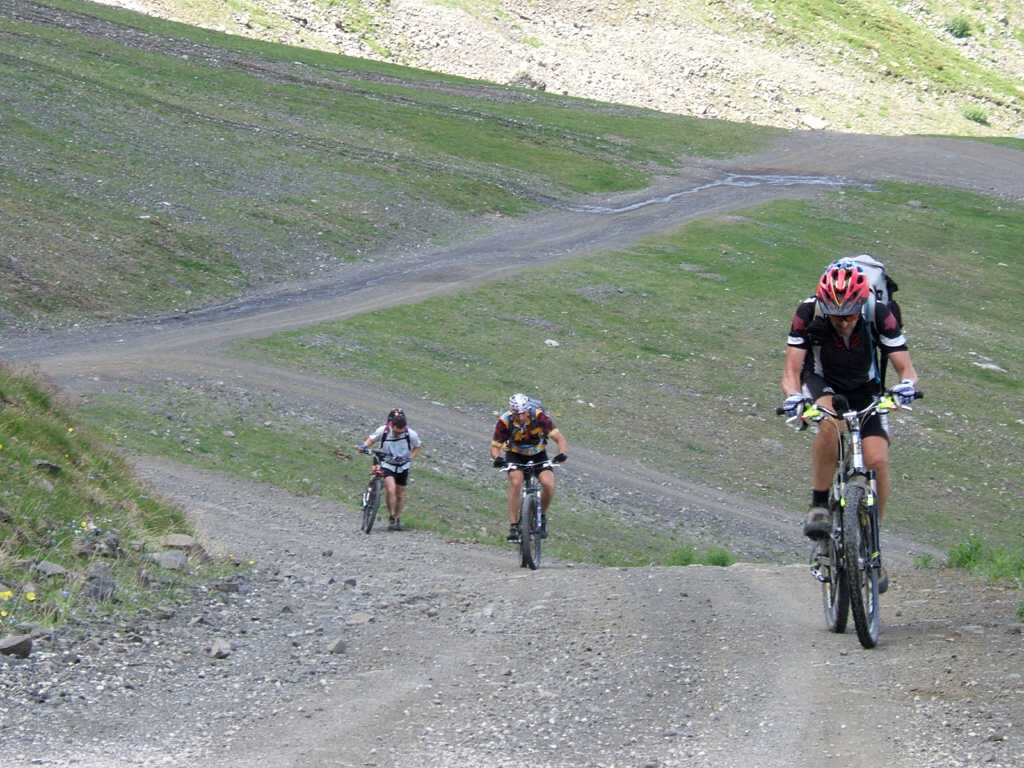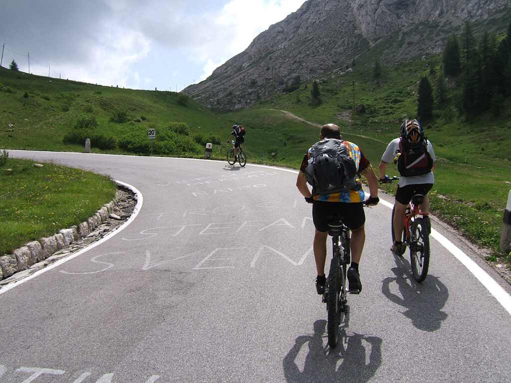 Sellajoch hoch, haben wir dann verzichtet und sind wieder bergauf asphaltiert.