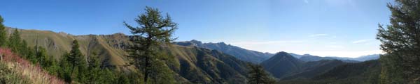 und genießen die Ausblicke auf die Berge des gestrigen Tages und