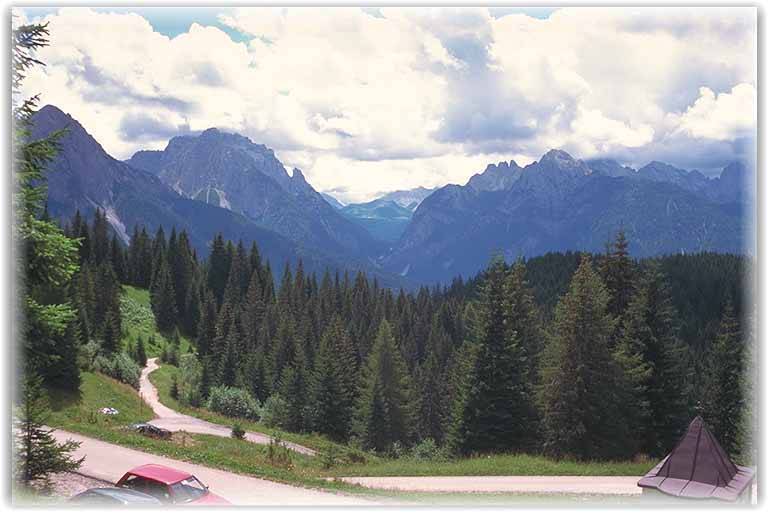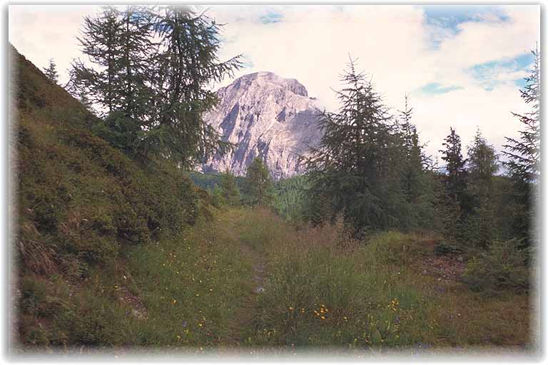 Nach Unterstützung der heimischen Gastronomie wird sich ostwärts orientiert, aber Vorsicht, nicht ins Val Visende abfahren, sondern sich ab Pra della Fratta nordwärts ins Val Dignas treiben lassen. Wer sich allerdings den Höhepunkt des heutigen Tages entgehen lassen will, kann auch bis ins Tal fahren und über Da Plenta das Tagesziel erreichen. Wir aber radeln das Val Dignas hoch und wo der Schotter beginnt, zweigt rechts der Weg 170, auch Strada del malghe genannt, ab.