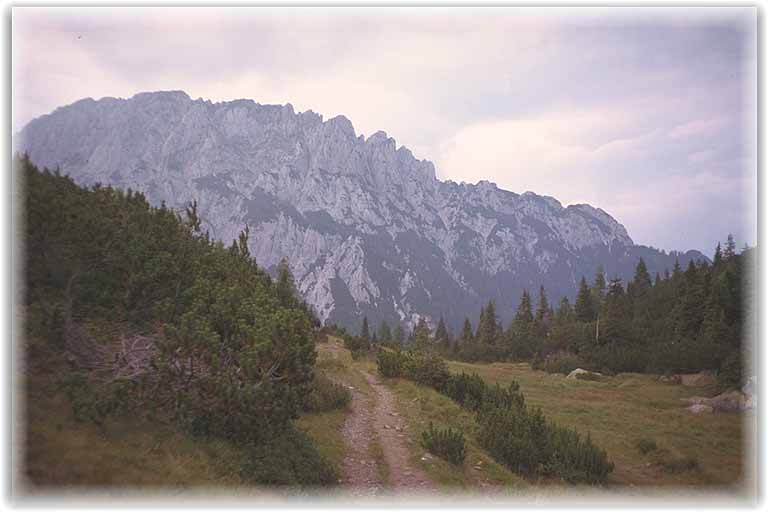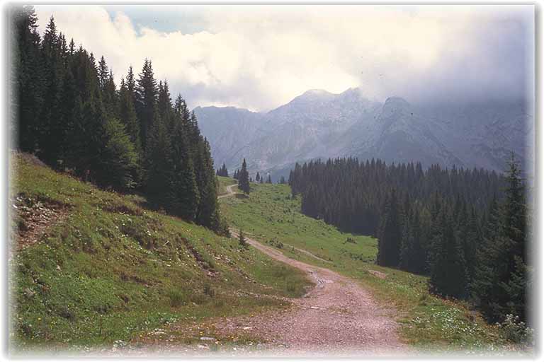 | Dank glücklicher Fügung stießen wir wieder auf einen erkennbaren Weg, der uns bis zur Garnitzenzalm begleitete. |