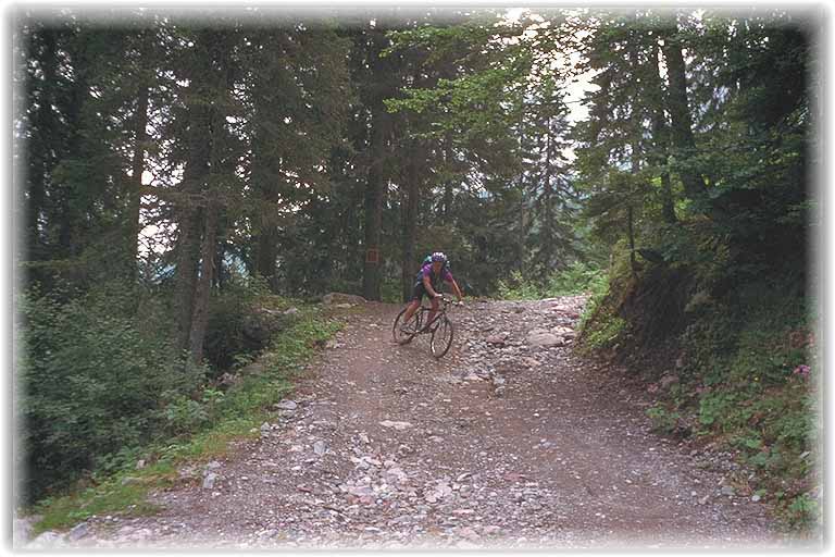 Erst kurz vor dem Mödendorfer Sattel wurde diese Survival Einlage beendet und die schmale Trailauffahrt bis zum Sattel hatte fast etwas von Erholung, wenn man davon absieht, das genau dort eine erfrischende Schauer auf die Beteiligten niederging. Der Natur des Sattels gemäß, ging es auf der anderen Seite wieder etwas bergab, aber der Kersnitzen Sattel wartete bereits. Nach dem letzten Reitutensil hatte ich irgendwie keine Lust mehr, die Dämmerung war gnädig und im letzten Abendlicht wurde die Egger Alm erreicht.