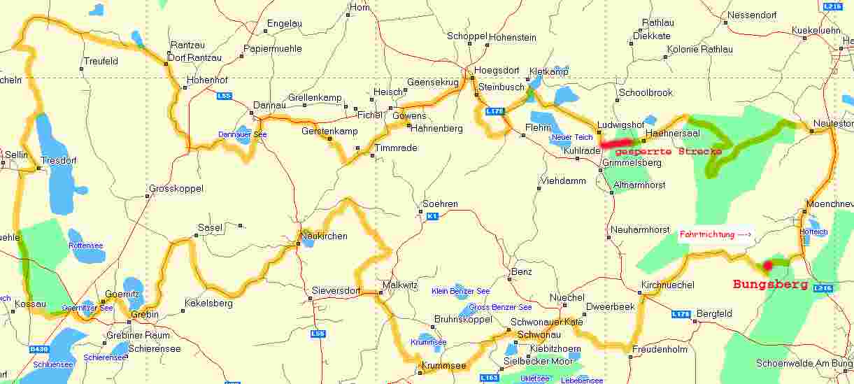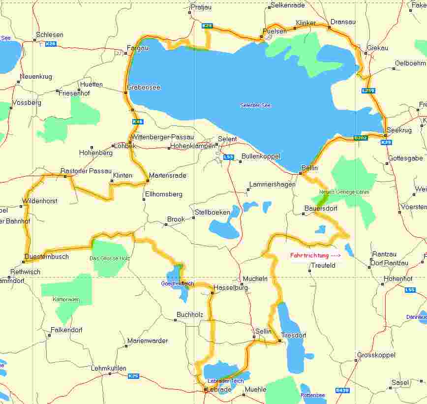 Rund um den Selenter See, relativ hoher Strassenanteil |