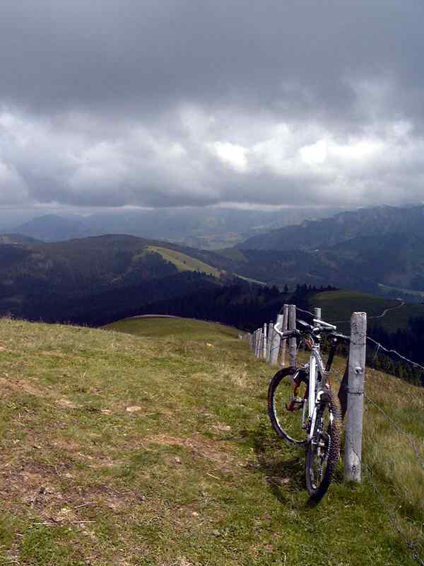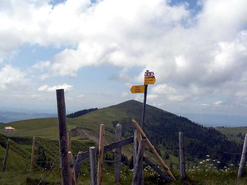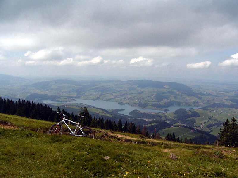 Vom Waldhaus führt die Tour downhill über Riffenmatt, Hirschmatt Richtung Plaffeien. Ab dem Wasserwerk an der Strasse nach Plaffeien, geht es über Wanderwege und Radrouten nach Plasselb. Dort führt der Weg über Muelers, St. Silvester, Bonnefontaine nach Oberried. Hier ist der Einstieg auf die Strasse zum La Berra. Die nächsten 1000 Hm führen nur bergauf, erst über Asphalt, dann Erdweg. Bis zum La Berra ist alles fahrbar, den Gipfel kann man aber nur schiebenderweise erreichen. Die Aussicht muss bei Sonnenschein toll sein, siehe Panoramabild, Jura, Eigergebiet, Gantrisch, leider löste sich die Bewölkung erst zwei Stunden später auf.