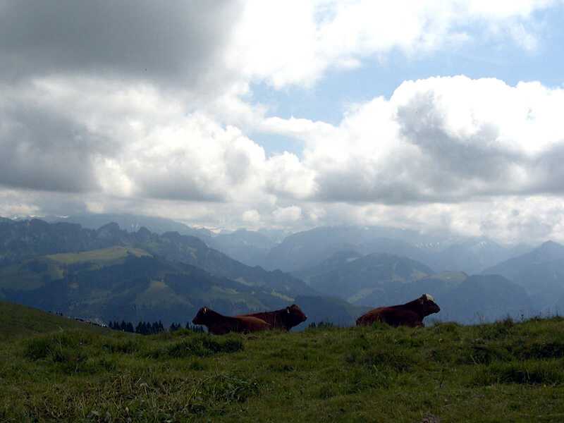 | Kühe mit Eigerregion | Kammweg ab La Berra | schön bunt | Downhill nach La Valsainte |