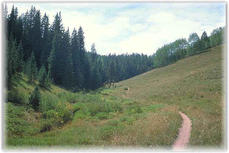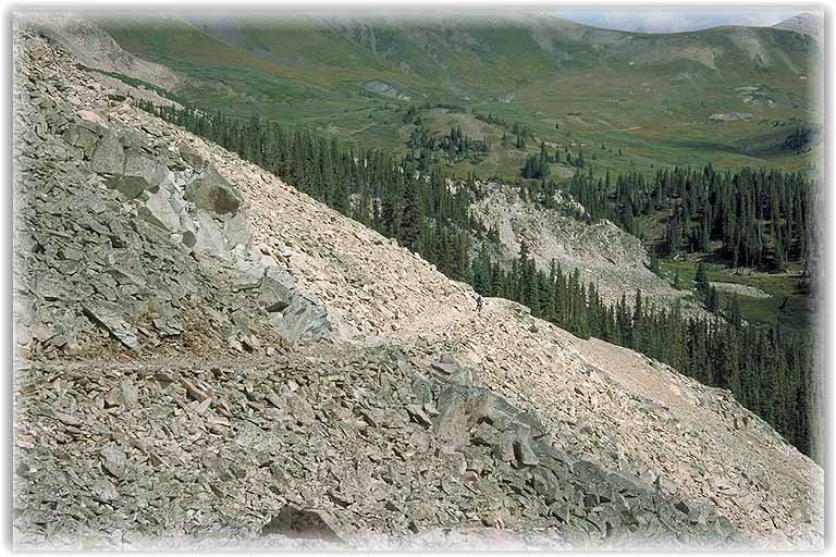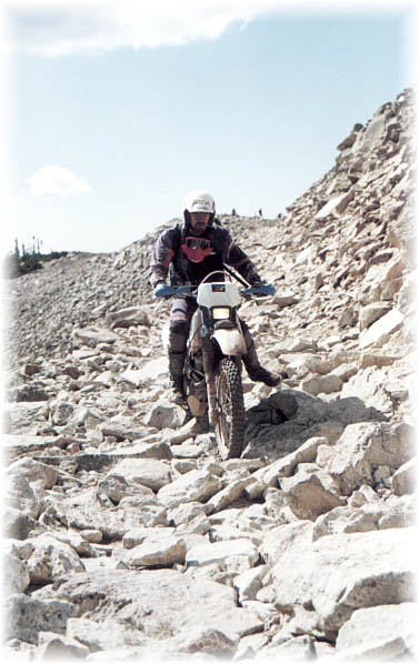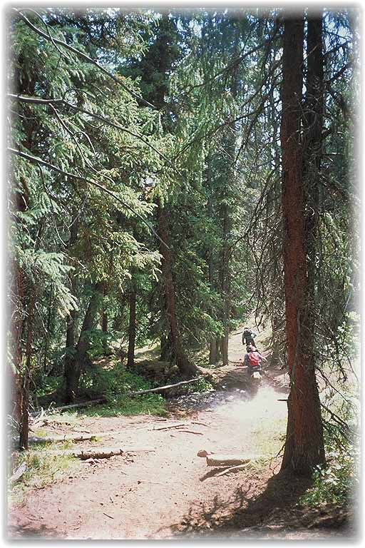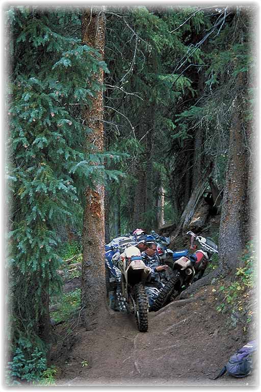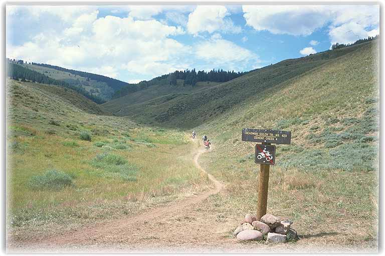 | Im Angebot waren noch etliche Trails, z.B. der Deadman Gulch Trail, sehr nett, besonders wenn man Steilwandfahren üben möchte, da der eigentliche Weg etwas abgerutscht war und der Steilhang die einzige Möglichkeit zur Weiterfahrt darstellte. Kein Problem, wenn man immer im Rhytmus blieb. |